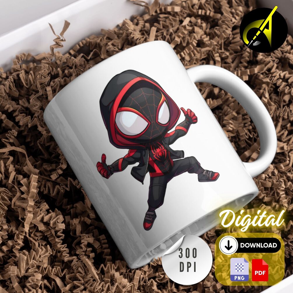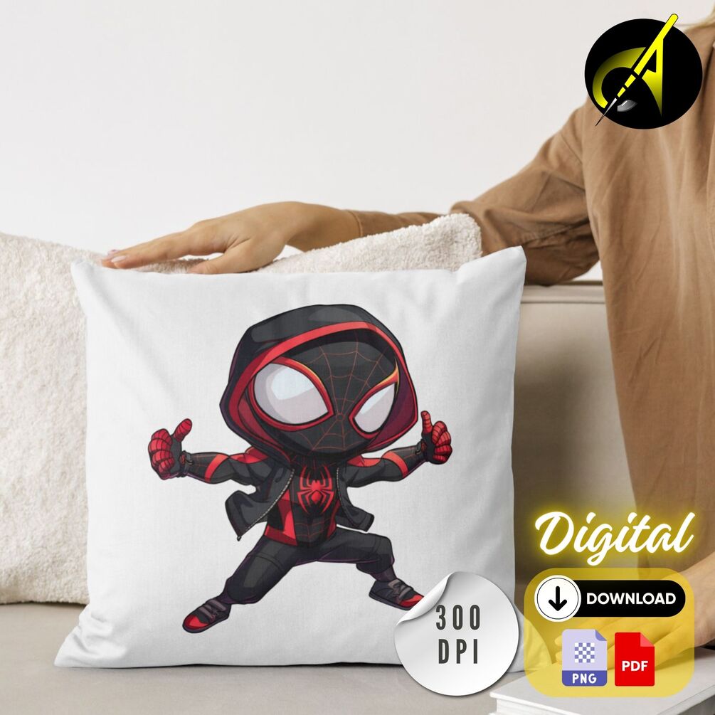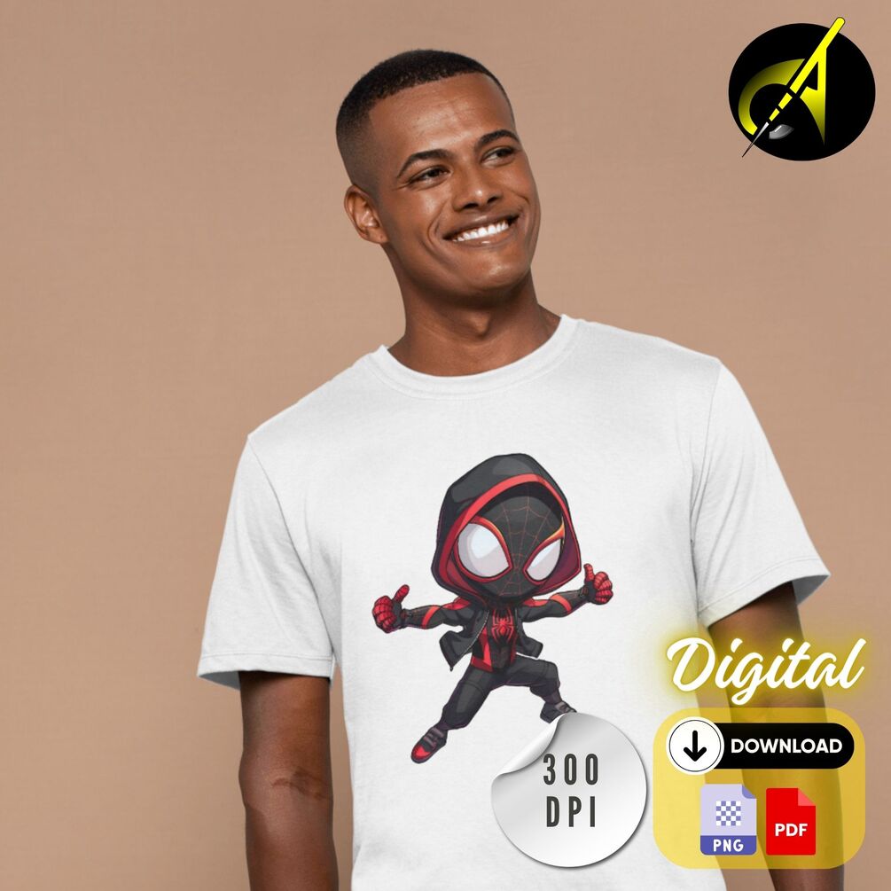 Chibi Masked Miles Morales Digital Clipart Spiderman Shirt Sweatshirt Hoodie Keychain Poster Invitation Print Spiderverse Instant Download