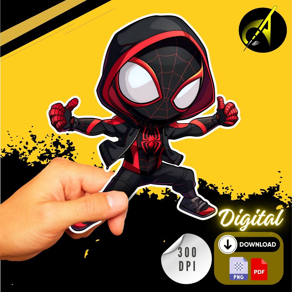 Welcome to our Spider-Verse adventure with Chibi Miles Morales Clipart! 🌌 This exclusive digital clipart captures the essence of the iconic hero in a cute and playful style. Perfect for enhancing Spider-Man-themed DIY projects like t-shirts, keychains, posters, sweatshirts, hoodies, and more! Instant download available in PDF and PNG formats, making it easy to customize Spider-Man birthday invitations or craft Spider-Verse-inspired creations. Don't miss out on adding a touch of superhero charm to your projects. Swing into action and grab your Chibi Miles Morales Clipart today! 🕷️ #SpidermanClipart #MilesMorales #Spiderverse #DigitalClipart #DIYCrafts